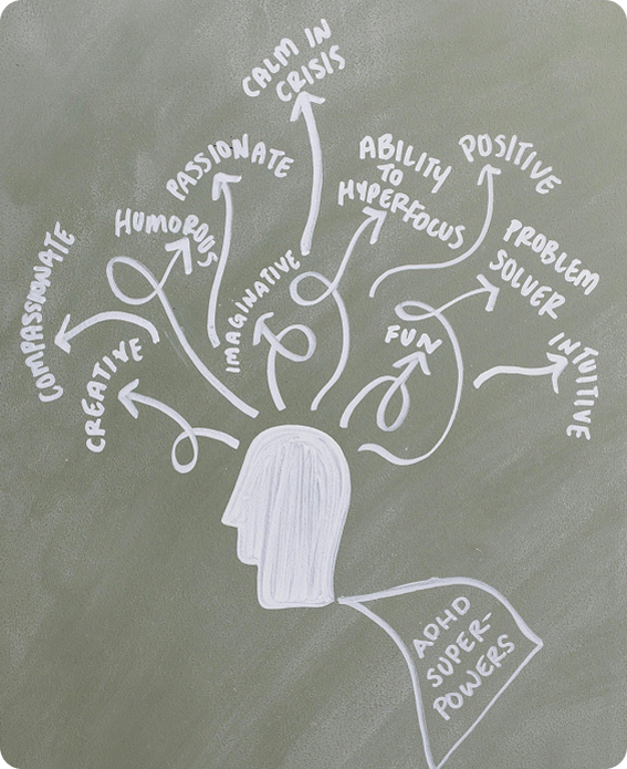 ADHD is frequently thought of in terms of certain behaviors, like impulsivity, difficulty focusing, and hyperactivity, but it is much more than that. ADHD is a result of a variation in brain function and cognitive processes, and it is referred to as neurodivergent. The typical, or more common brain patterns, are known as neurotypical. It is this variation in brain wiring that results in the challenges, as well as the unique strengths and perspectives of those with ADHD.